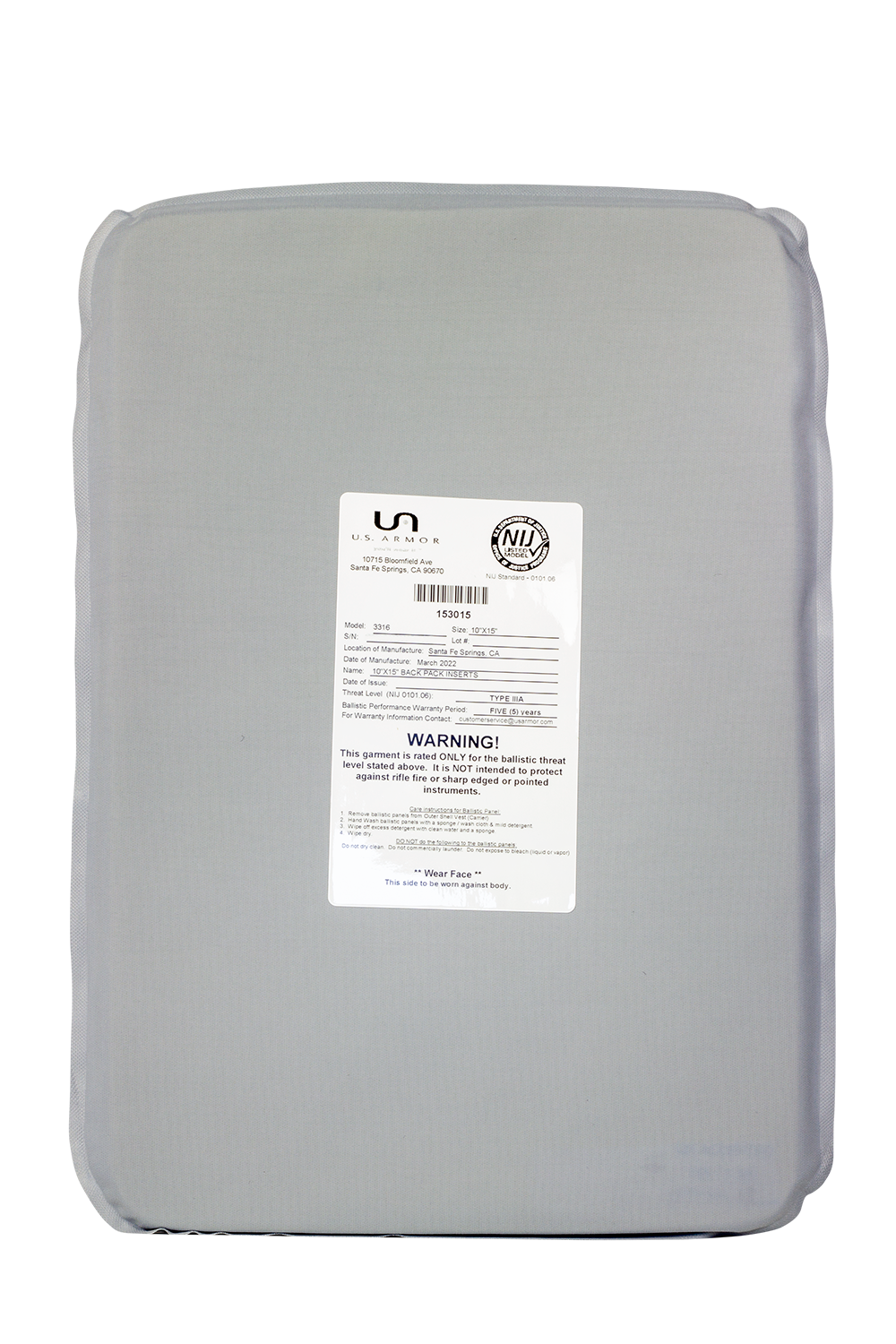 - Soft, flexible construction allows ballistic backpack panel to be easily inserted into bags and packs with sufficient capacity