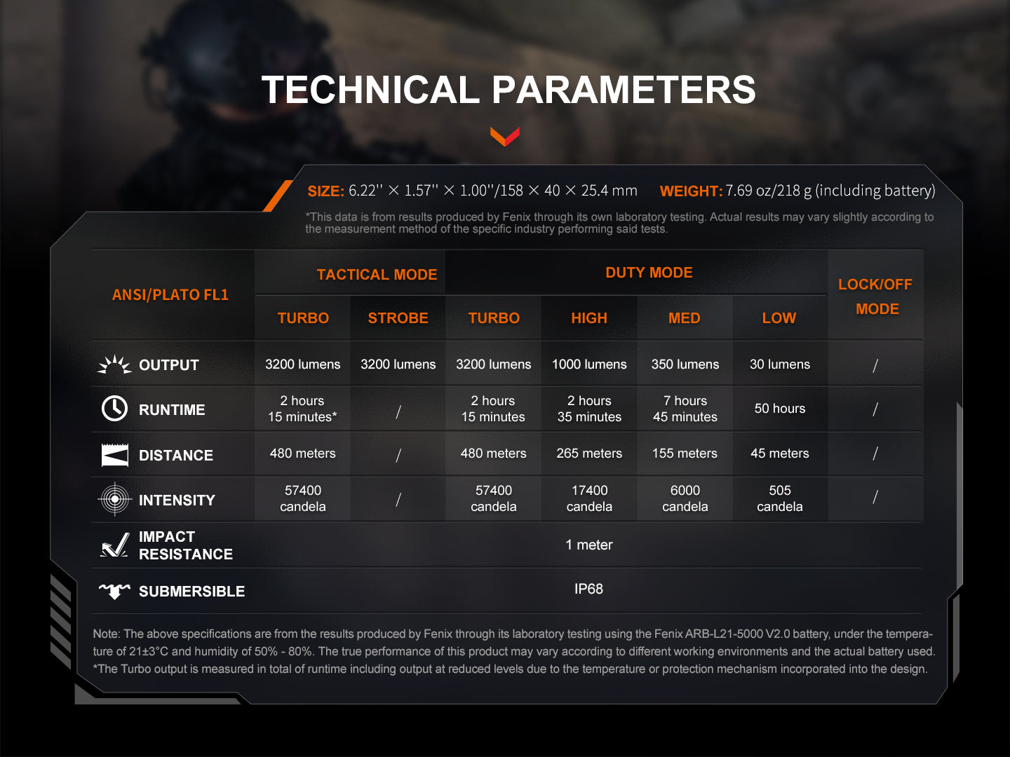 The Fenix TK22R features a 3200 lumen maximum output, seamless transition between tactical and duty modes, and the Patented Flexi-sensa Control Switch for intuitive operation. Its hidden USB-C charging port ensures swift recharging, complemented by the robust 5000mAh included battery.