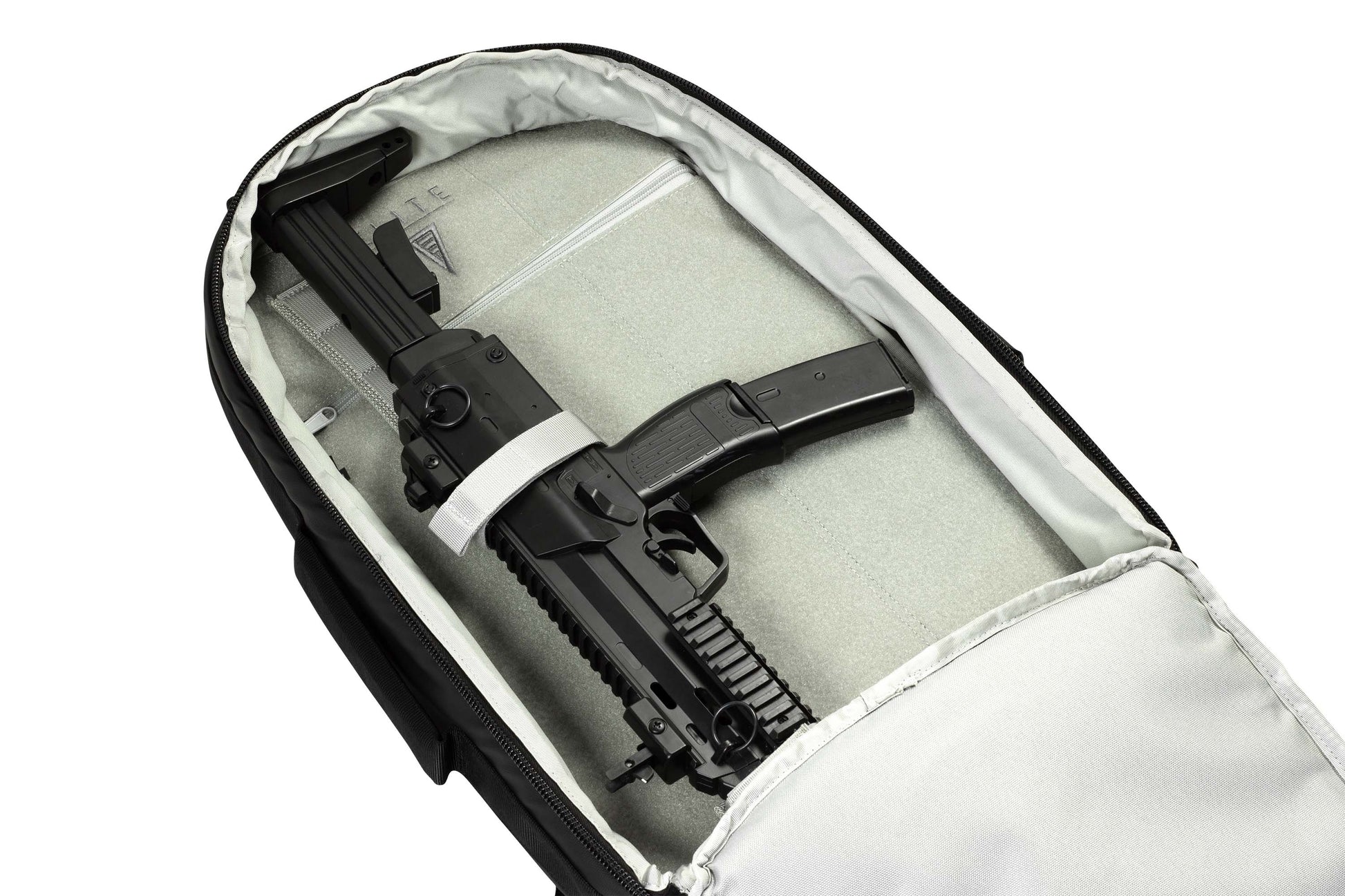 - Discreet rifle case backpack with armor option available in Black and Heather Gray