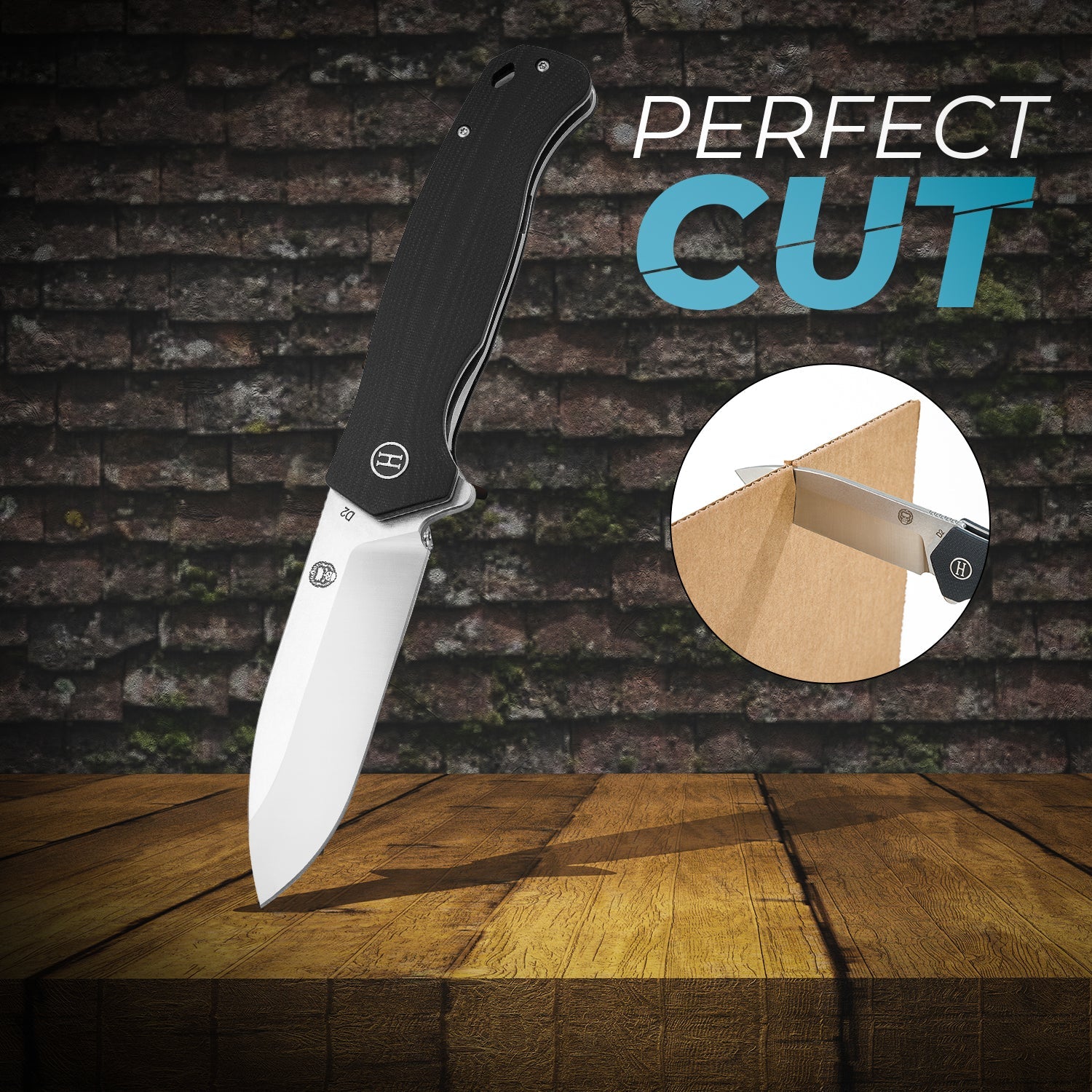 - ✅ ALWAYS BE PREPARED FOR EMERGENCIES: This premium 8.74" long folding pocket knife features a razor-sharp 3.82" blade made of D2 Steel guaranteed to cut easily wood, paper, plastic or aluminum without going blunt.